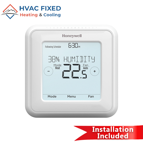 This Honeywell Thermostat RTH8560D1008/E model offers advanced temperature control with Wi-Fi connectivity, allowing you to manage your home’s heating and cooling remotely via a smartphone or tablet. It is compatible with popular smart home platforms, including Google Assistant, Amazon Alexa, and Samsung SmartThings, enabling you to control your thermostat using voice commands or through your smart home hub. The thermostat features intuitive programming options, including a 7-day schedule, that help optimize energy usage, ensuring maximum comfort and cost savings. With its colour touchscreen display and adaptive recovery feature, it learns your system’s behaviour to provide the perfect temperature at the right time. Additionally, the filter change reminder and smart response capabilities keep your system running efficiently, while the geo-fencing function ensures your home is always at the ideal temperature when you arrive or leave.